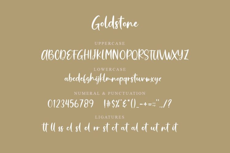 Goldstone is a stylish handwritten font with unique style. Goldstone is perfectly suited to signature, stationery, logo, typography quotes, magazine or book cover, clothing, branding, packaging design and more.